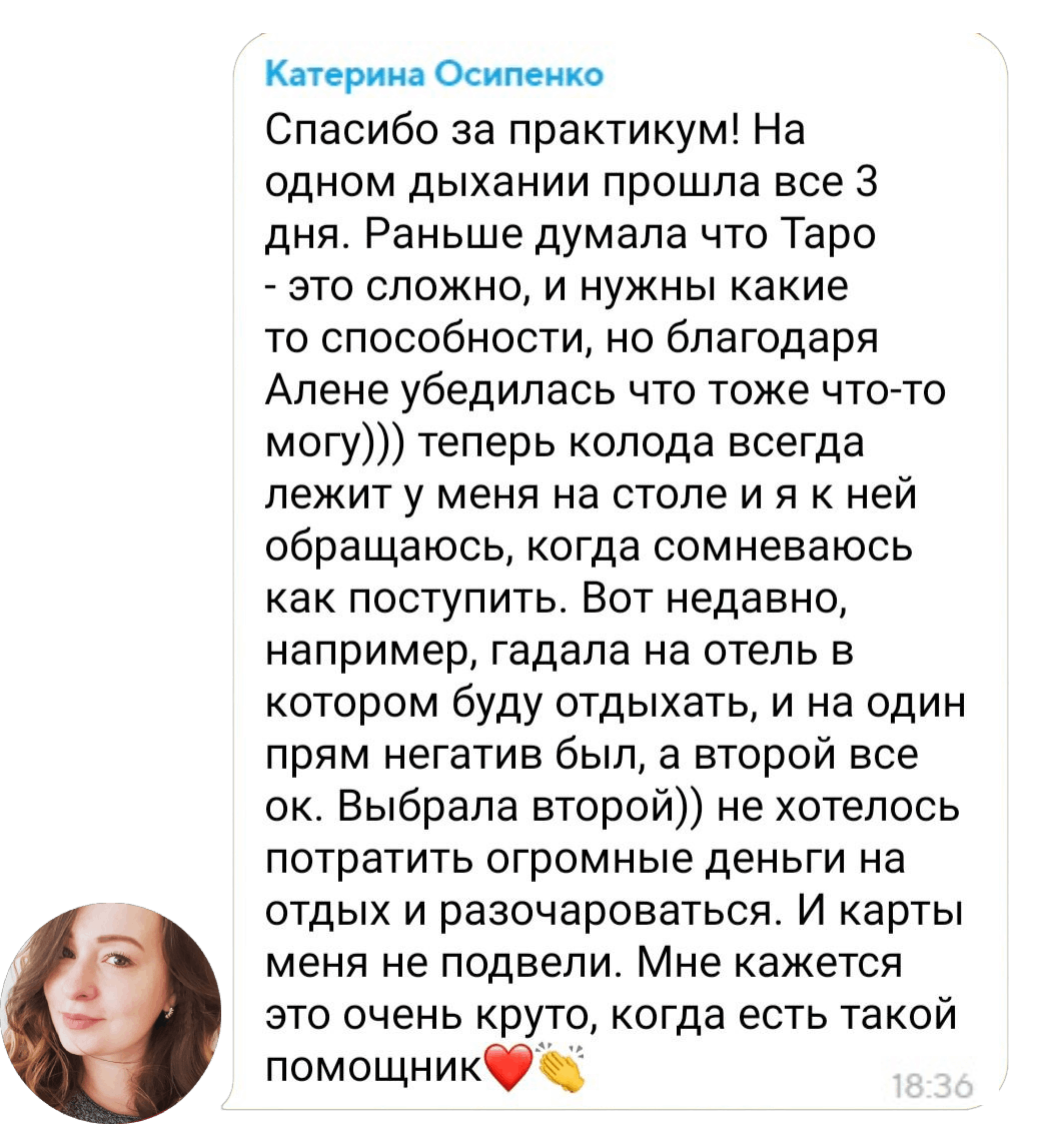 Вы переживаете период неопределённости (потеря работы, развод, сложности в отношениях), хотите обрести ясность и получить эмоциональную поддержку и подтверждение, что “все будет хорошо”