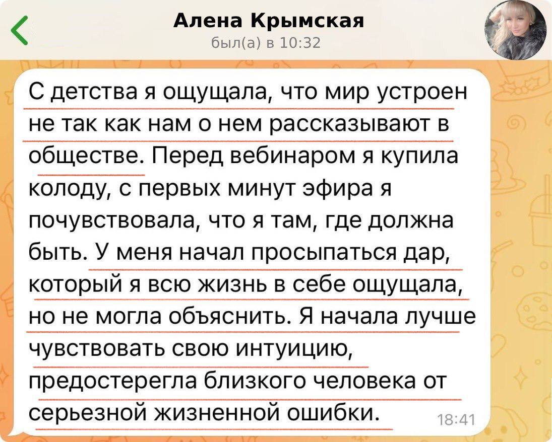 После вебинара у Алены развился дар предчувствия и считывания информации. Благодаря этому она смогла предостеречь близкого человека от серьезной ошибки.