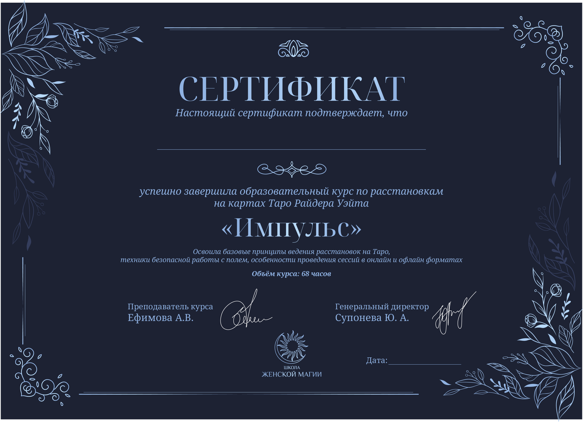 Основатель школы Женской Магии - пространства для женщин, в котором она раскрывает в себе способность притягивать в свою жизнь любовь, изобилие и удачу через свое состояние, мышление, тело и энергетику